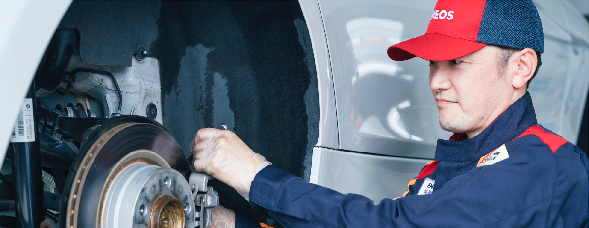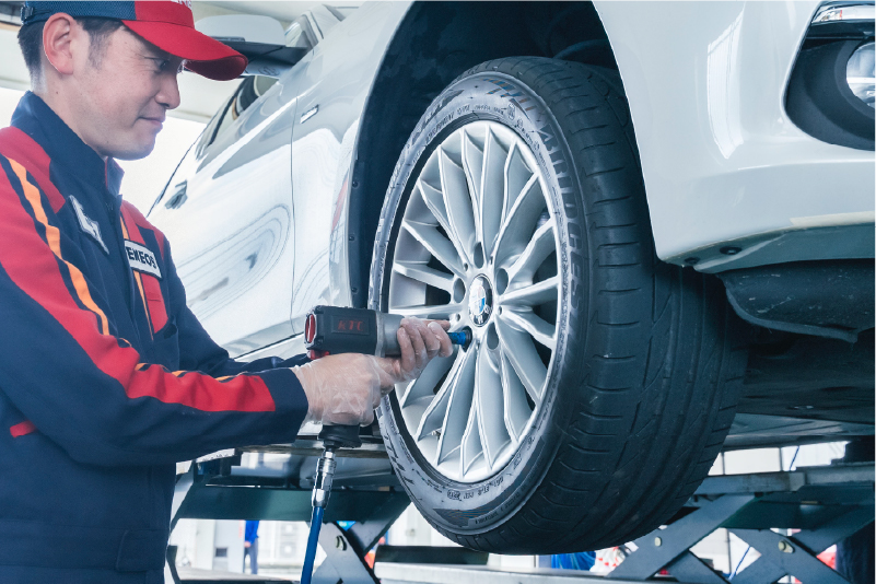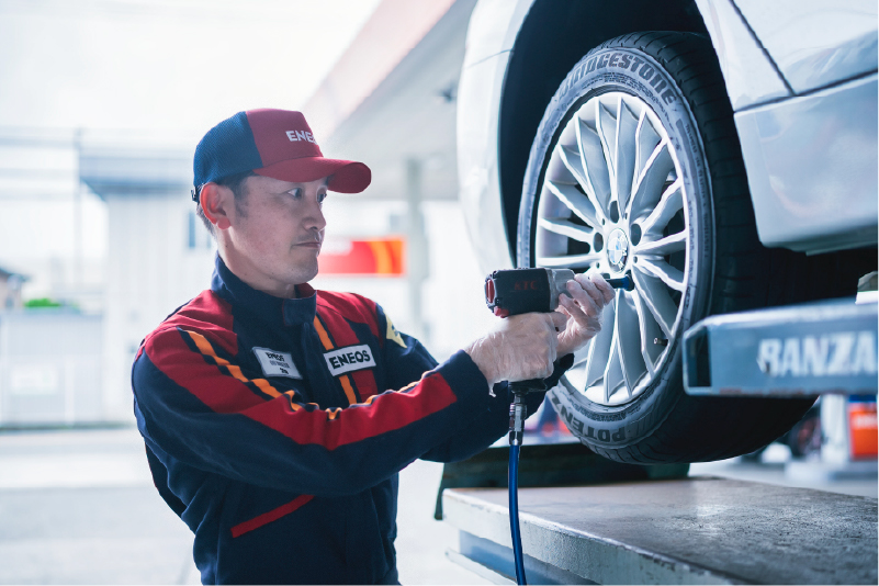 車の整備もサービスステーションの仕事です。お客様のご依頼に応じてオイル交換、タイヤ交換、バッテリー交換などを行います。仕事に必要な自動車整備の知識が身につき、自分の車のメンテナンスもできるようになります。より整備に興味がある方には整備士資格の取得もサポートしています。